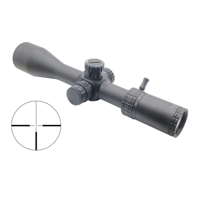CARACTÉRISTIQUES : - Grossissement variable : 2,5 à 15x. - Diamètre de l'objectif 56 mm - Distance de la pupille de sortie 86-102 mm - Champ de vision : 146/24,3 m/1000 m. - Valeur de clic 1/4 MOA - Plage d'élévation : 45 MOA - Verrouillage des tourelles - Compensation de parallaxe 10 yards - 8 - Oculaire à mise au point rapide : oui - Gaz scellé à l'azote - Réticule en verre gravé éclairé - Entièrement multicouche - Diamètre du tube principal 30 mm. - Longueur 372 mm. - Poids net 670 g.